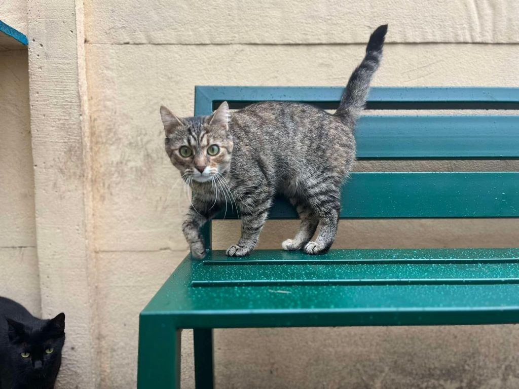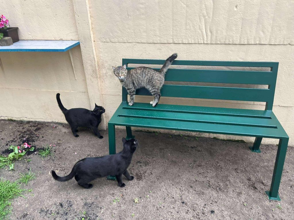 Koteczki i ławeczki 😻 Kocioogródki w Kociolandii i Kocim Sanatorium są wyposażone w nowiusieńkie, kolorowe ławeczki, takie ładneeee , jak amerykańskie 😉😊 Oczywiście zostały ustawione z myślą o Was, ale jak widać upiekliśmy dwie marchewki na jednym ogniu i stały się ulubionym miejscem kocich narad i wyskoków 😸