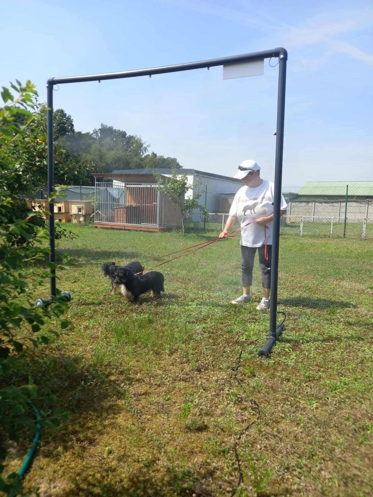 Jutro będziecie mogli skorzystać z kurtyny wodnej podarowanej przez firmę Bevo Poland ❤️ ❤️❤️ Nasze psiaki oraz wolontariusze już dzisiaj korzystają, aby ochłodzić się w ten upał, który dzisiaj każdemu doskwiera 🥵