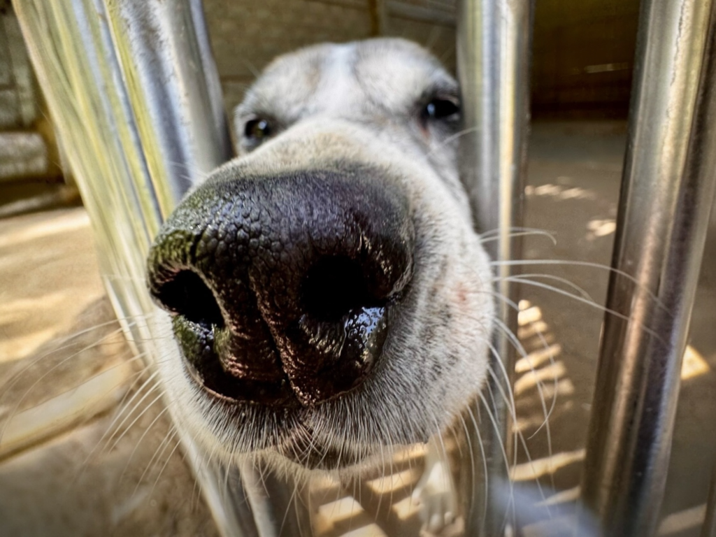 Drucik cały czas uczy się zaufania, uczy się tego, ze człowiek nie zawsze jest katem. Wyłapany na jednej z wiosek, z owiniętym w koło szyi drutem. Ile w nim biegał? Nie wiemy. Wcześniejsze traktowanie zostawiło niestety piętno na jego psychice…