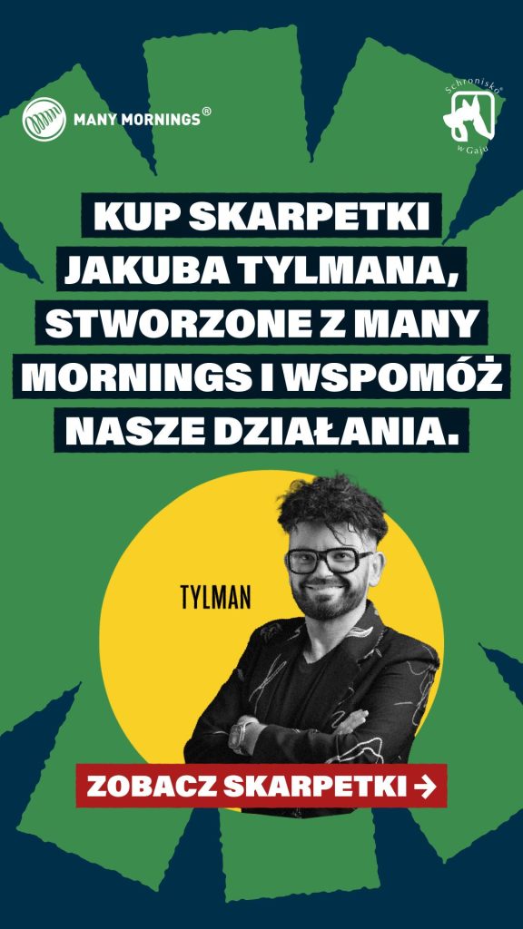 Święta tuż tuż! Czas dawania prezentów się zbliża. Dlatego SKARPETKI KTÓRE POMAGAJĄ wracają! Jakub Tylman razem z Many Mornings stworzyli limitowaną kolekcję skarpetek, które mają moc pomagania. Szukasz prezentu dla najbliższej osoby? Szukasz prezentu dla siebie? Kup skarpetki i pomóż nam opłacić faktury za leczenie weterynaryjne 🙂