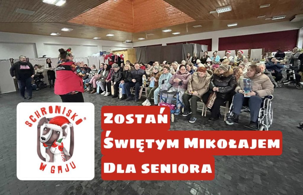 Kochani! Jak w poprzednich latach zachęcamy Was do zostania Świętym Mikołajem dla seniorów, którzy tego bardzo potrzebują. Tradycyjnie chcemy przygotować paczki dla pensjonariuszy Domu Pomocy Społecznej w Psarskim oraz dla pensjonariuszy Zakładu Leczniczo-Opiekuńczego w Śremie. Będzie nam bardzo miło, jeśli nam w tym pomożecie. Możecie sami przygotować paczkę, można ją również dostarczyć do schroniska – wtedy my przygotujemy paczki w Gaju.