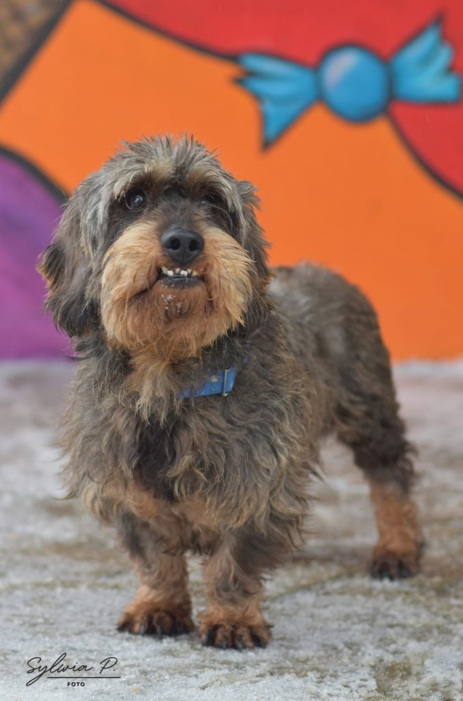 To uroczy, około trzyletni pies w typie jamnika szorstkowłosego. Energiczny, inteligentny i niezależny, z silnym instynktem łowieckim — na spacerach zawsze z nosem przy ziemi, ciekawy świata i gotowy na przygody. Bywa uparty, jak to jamnik, ale ma odważne usposobienie — nie boi się ludzi ani nowych sytuacji. Jest lojalnym i wiernym psiakiem, który szybko przywiązuje się do człowieka i uwielbia jego towarzystwo.