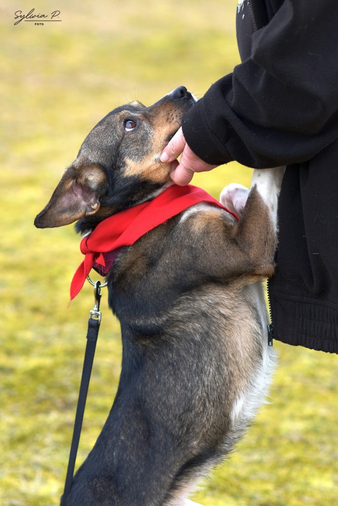 To młody psiak pełen energii. Wulkan radości, który na widok człowieka staje na tylnych łapkach i przednimi delikatnie zaczepia, jakby chciał powiedzieć: „Hej, nie mijaj mnie!”. Trudno przejść obok niego obojętnie – Klemens skutecznie kradnie serca.