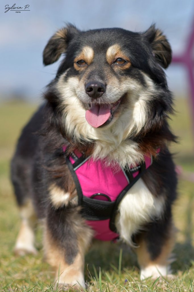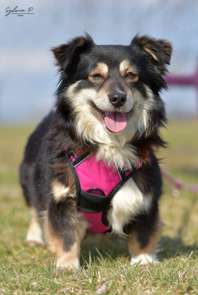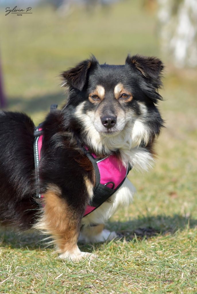 Jest nieśmiała i potrzebuje czasu, aby zaufać. Jednak gdy poczuje się bezpiecznie i zrozumie, że nic jej nie grozi, potrafi pięknie się otworzyć — chętnie podreptuje za opiekunem na spacerze i szuka jego obecności.