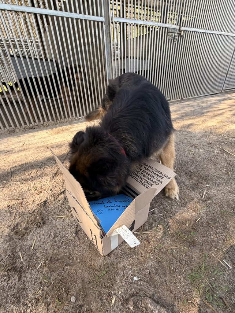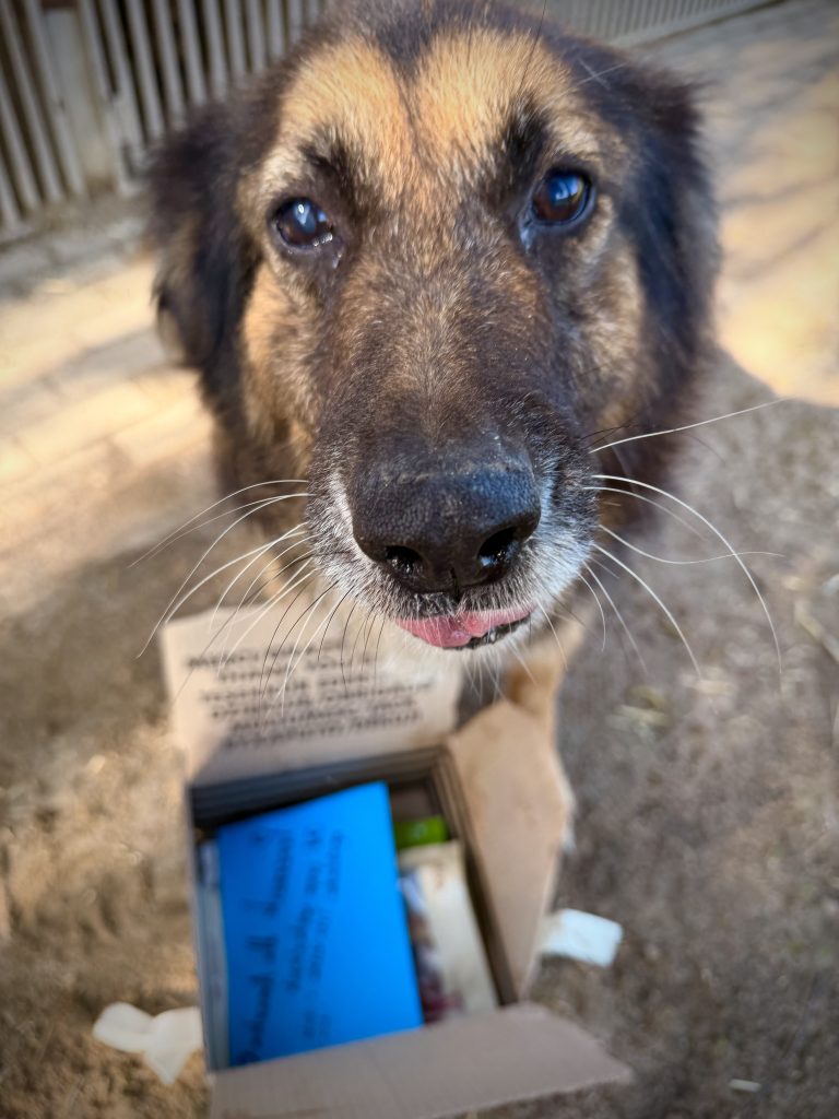 Amor otrzymał od swoich Wirtualnych Opiekunów – suplementy na stawy, smaczki oraz piłeczkę. 🎾