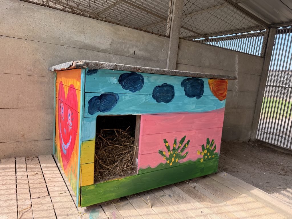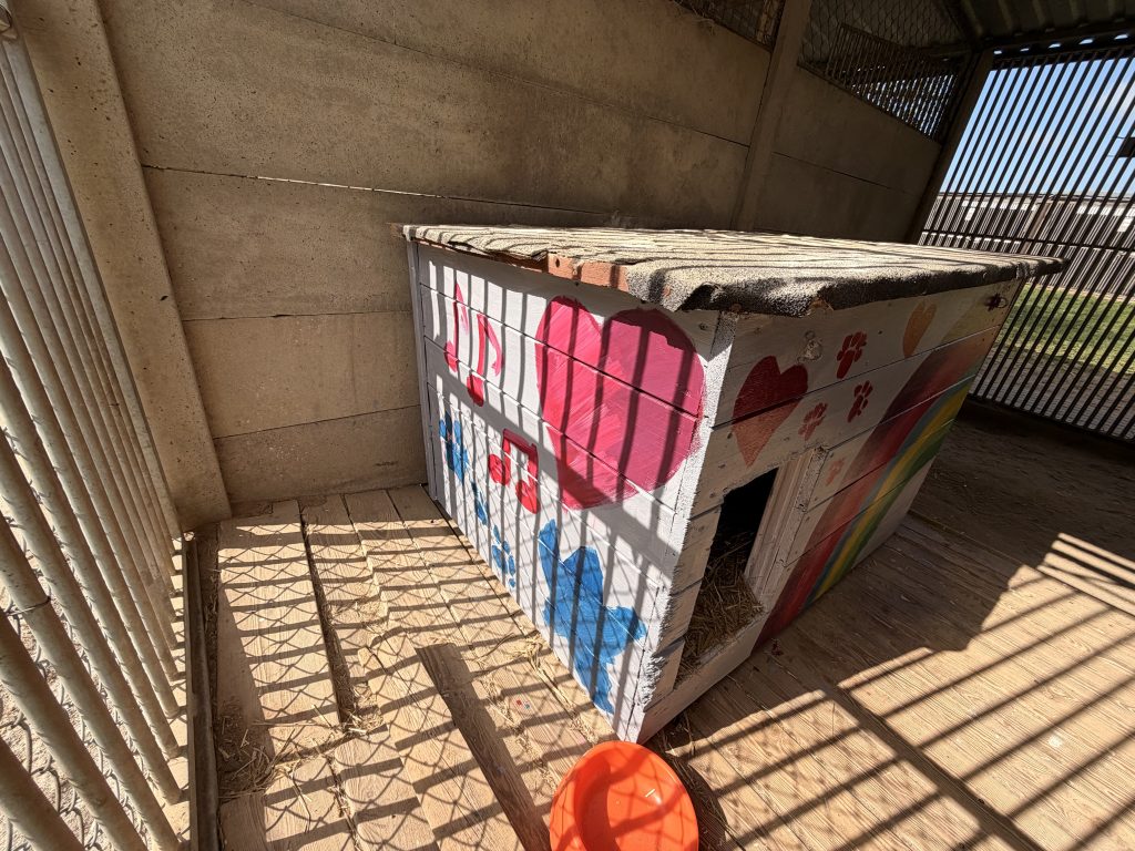 (Oczywiście marzą się nam puste budy i szczęśliwe adopcje – a wtedy spanko na kanapie czy w łóżku… ale na ten moment buda nie musi być smutna i pozbawiona koloru! 🫶🏼).