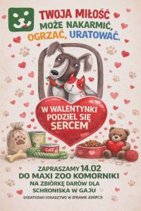 W Walentynki podziel się sercem! Twoja miłość może nakarmić, ogrzać uratować ❤ Już 14 lutego możecie się z nami spotkać w Maxi Zoo w Komornikach,