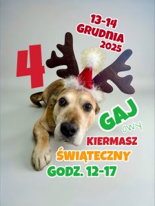 Cześć! Tutaj Borys, super psiak ze Schroniska w Gaju! 🐶 🎅🏽 Dziś mamy 14 grudnia! 🎁 Dziś drugi dzień – 4 GAJOWEGO KIERMASZU ŚWIĄTECZNEGO! ‼️